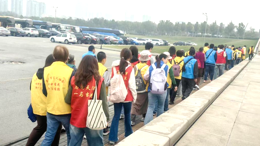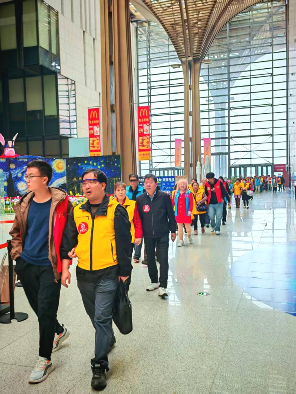 活动当天清晨,3003新葡官方网站志愿者服务队的师生们早早来到各个接站口等候视障朋友们的到来。志愿者们主动迎上前,以温和的语调进行自我介绍,伸出手臂提供支撑。一句“您放心,今天我全程陪您逛科技馆”的暖心承诺,不仅迅速拉近了彼此的距离,也有效缓解了视障朋友初到陌生环境的不安与紧张。