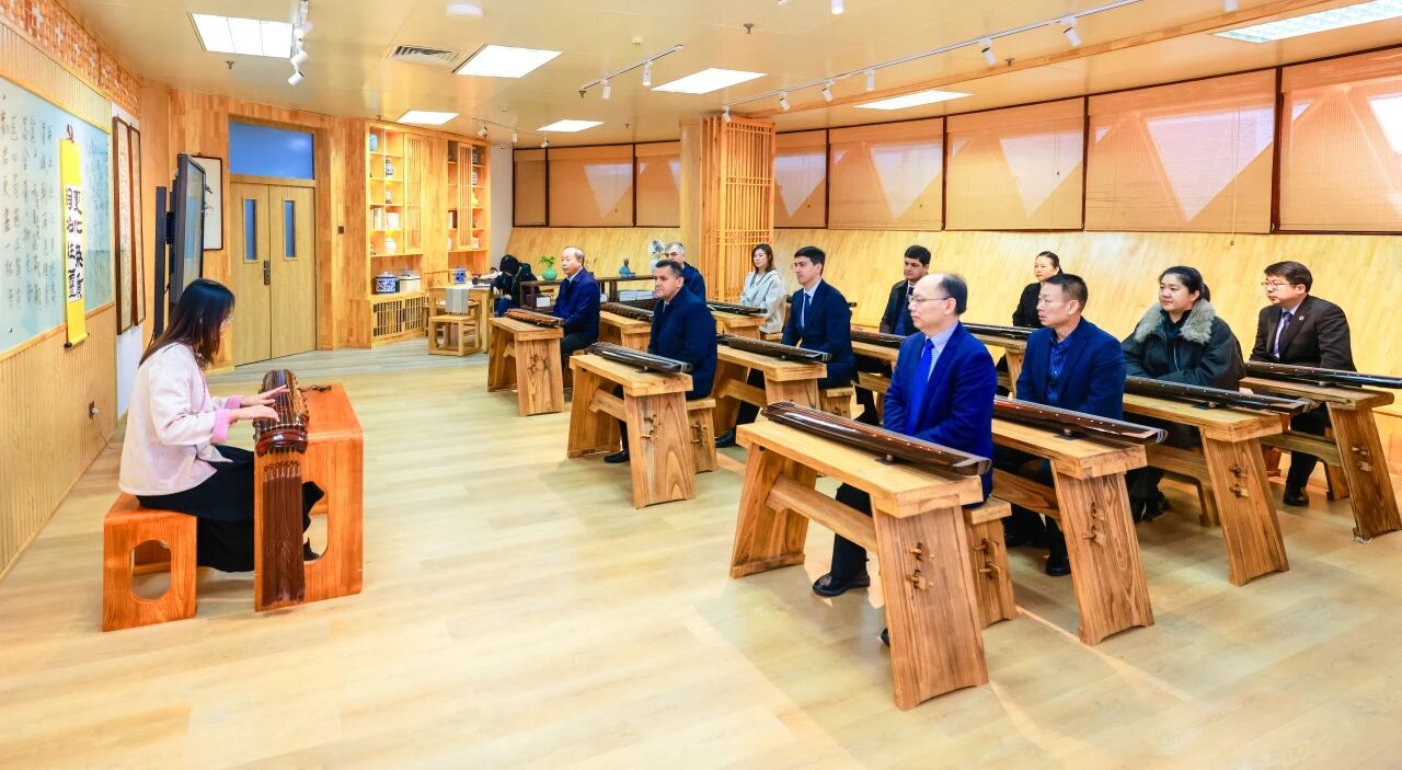 会后,代表团一行参加塔吉克斯坦来华留学生见面会,同塔方学子亲切交谈,勉励学生们珍惜在华留学的宝贵时光,精进专业技能、学有所成。代表团参观了新葡京中华优秀传统文化中心暨古琴弦歌基地,深入了解新葡京办学条件与特色优势,沉浸式感受古琴弦歌等中华优秀传统文化的独特魅力,对新葡京国际化办学成果及深厚的文化育人氛围给予高度赞赏。