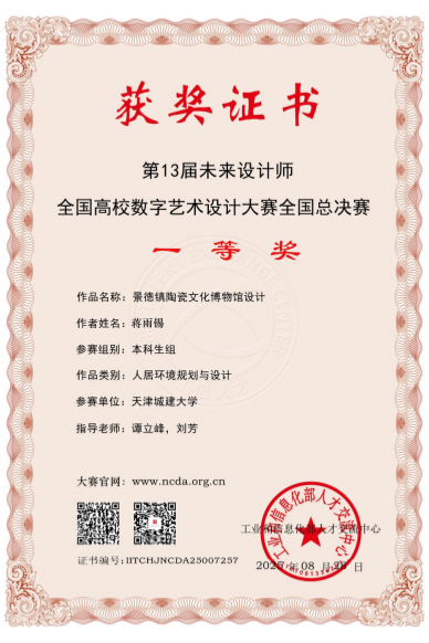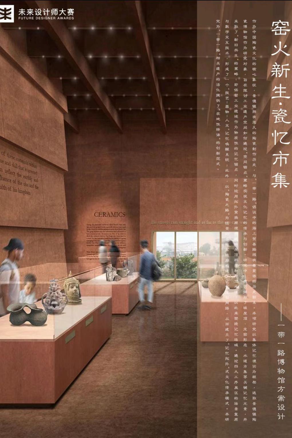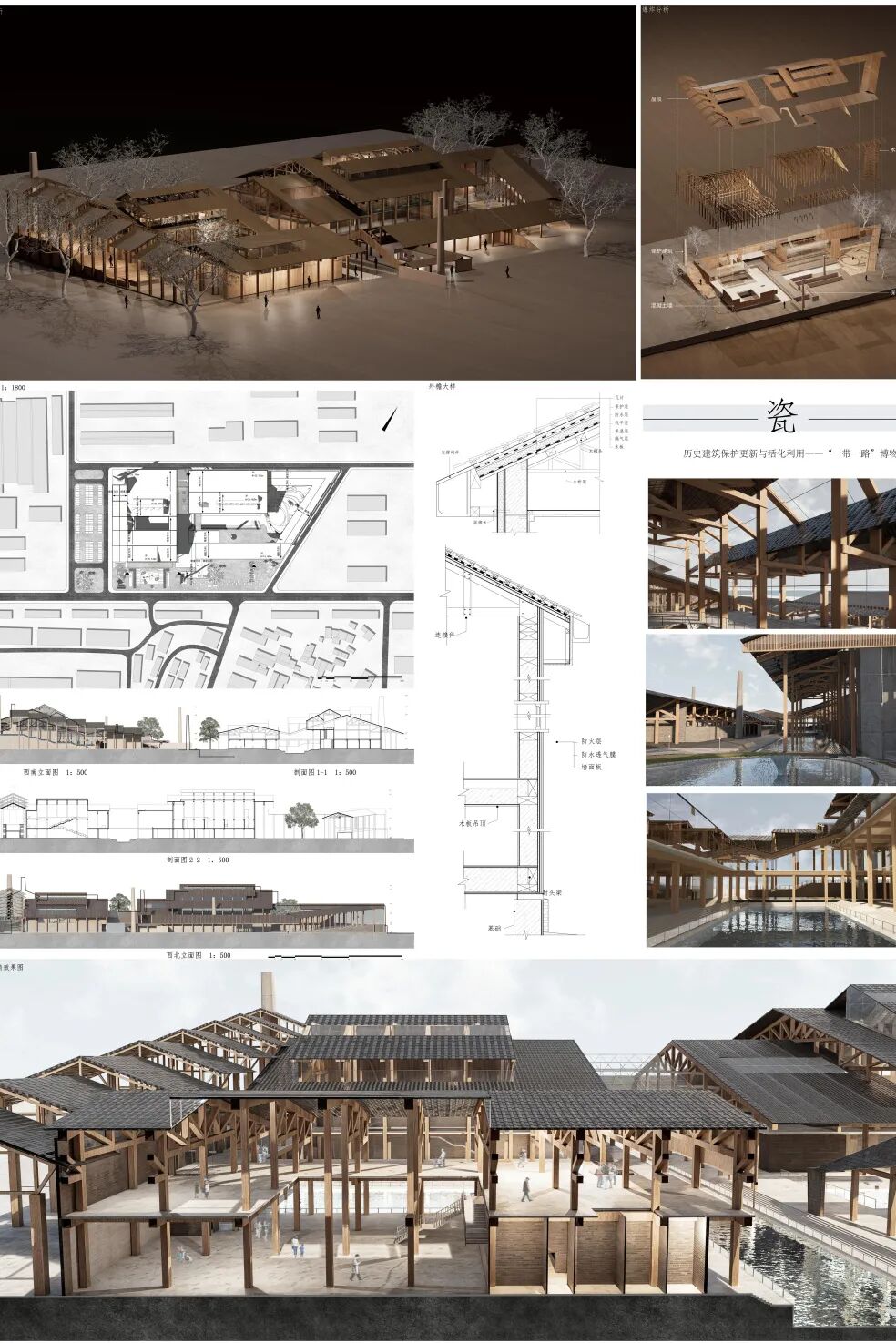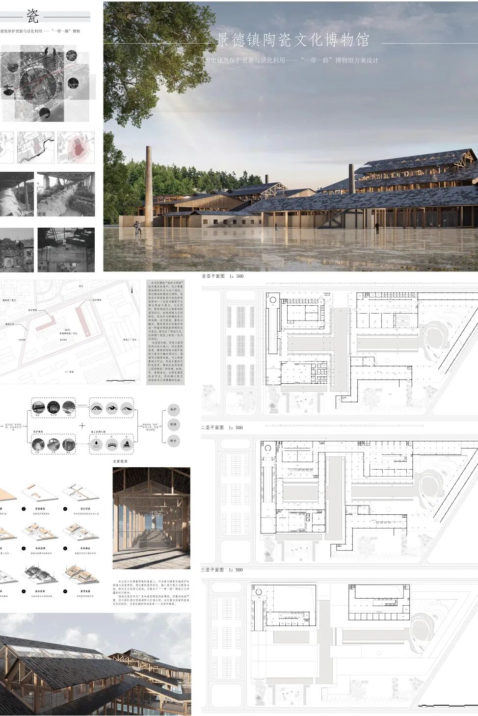 作品以集体记忆理论为框架,聚焦景德镇陶瓷博物馆这一工业遗产空间,探讨如何借“空间锚点”策略实现文化记忆的传承与创新。设计提取坡屋顶、龙窑形态、水道市集等在地元素,采取了“新旧共生”的策略:既保留工业遗存作为记忆载体,又运用拓扑变换原理构建坡屋顶群落和架空水道,重塑记忆场域。通过四大工序展区的场景复原与数字交互,构建“技艺器物人文”三重记忆唤醒机制;并以“陶瓷之路”多标高连廊串联空间,形成记忆流动网络,最终建立起“记忆拓扑”式的文化传承模式,为“一带一路”遗产的在地转译与活化提供了创新范式。