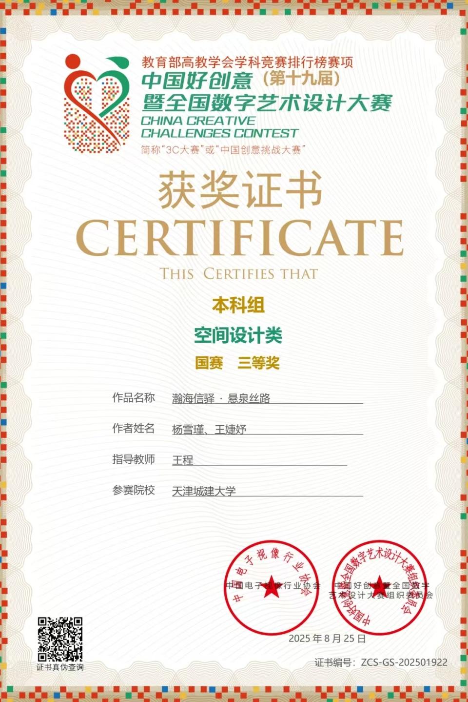 每一份荣誉的背后,都是学子们才华与汗水的结晶,更是学校教师深耕人才培养沃土的丰硕成果。一直以来,学校始终秉持“以赛促学、以赛促教、以赛促创、以赛促用”的教育理念,将学科前沿赛事与课堂教学、实践创作有机融合,系统构建高水平创新实践平台,全面激发学生的创新潜能与实践能力。此次在多项权威赛事中取得优异成绩,不仅充分展现了同学们扎实的专业素养与综合能力,更是学校持续推进人才培养模式创新、教育教学质量稳步提升的生动体现。未来,学校将坚定不移地践行立德树人使命,持续深化人才培养模式创新,以更高的标准、更实的举措,全面提升教育教学质量与学生的核心竞争力,助力3003新葡官方网站学子在更广阔的舞台中放飞青春梦想,成就精彩人生。