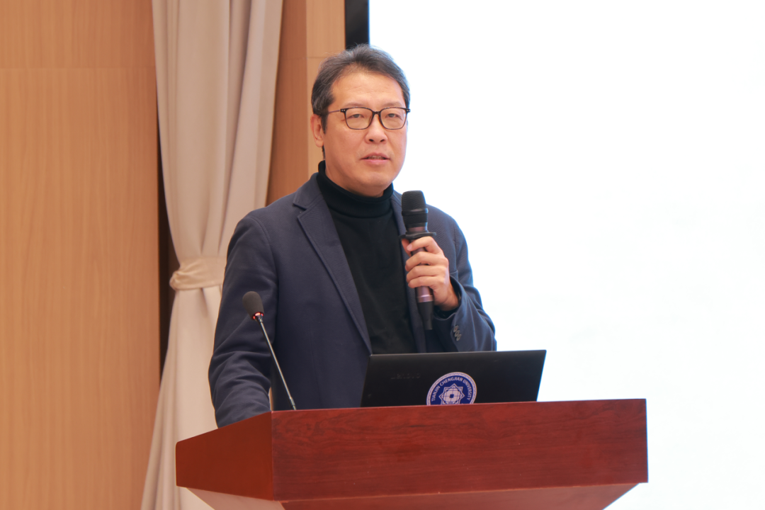主旨报告环节由新葡京建筑学院院长汪江华主持。李霆作题为《智能建造重塑建筑业新生态》的报告,表示未来五年需推动重体力劳动向机器作业转型,通过标准化降低成本,推动行业从“功能房”向“智能房”跨越,重塑科技密集型新生态。
