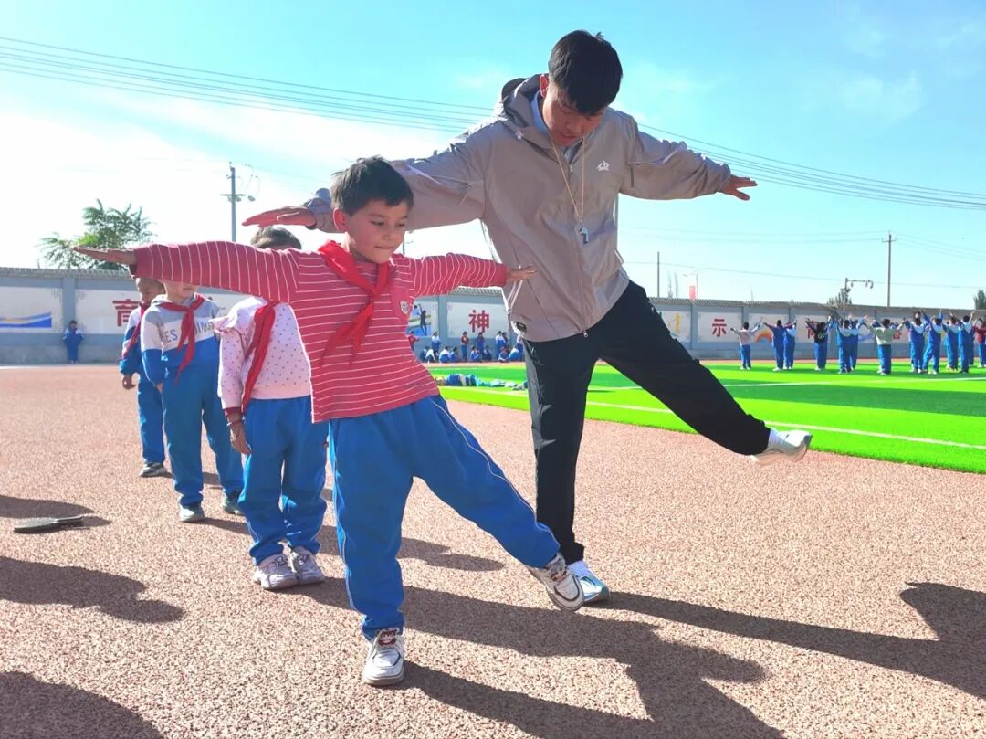 到了体育课时间,整个操场像被倒入了一整瓶跳跳糖,噼里啪啦沸腾起来,运动鞋踩在跑道上的轻响、孩子们雀跃的笑声,混着风的声音,成了最鲜活的背景音。孩子们在我们这群小体育老师的带领下,尽情地跳跃、舒展、翻滚,他们像一群挣脱缰绳的小马驹,迎着风张开双臂,仿佛要把整个操场的阳光都兜进童年的口袋里。
