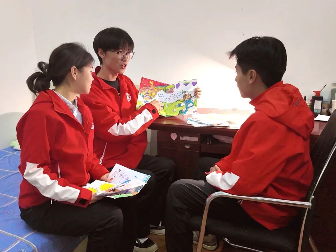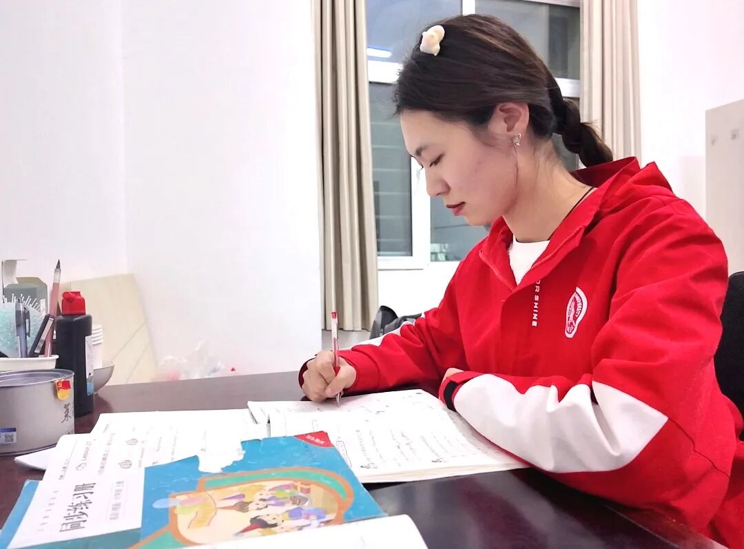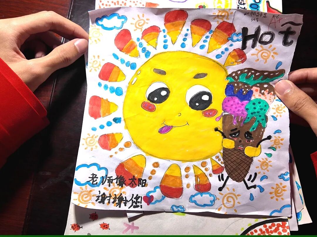 当夜幕低垂,一天的支教时光在孩子们的笑语与道别声中落下帷幕。我们拖着些许疲惫,回到驻地小院。灯光一盏盏亮起,简单洗漱后,我们坐在各自的书桌前,开始备课。翻开白天课间孩子们塞过来的作业本——那些歪歪扭扭的英文单词,像刚学走路的小娃娃,跌跌撞撞却格外认真。还有那些大小不一的画纸,更让我们心头一软:有的画着杨柳青年画里胖嘟嘟的娃娃,圆脸蛋上点着两团红晕,手里还抱着条大鲤鱼;有的画着我们支教老师,旁边歪歪扭扭写着“天津老师辛苦了”;更多的画纸上,是孩子们用蜡笔涂出的太阳,圆圆的,亮亮的,周围飘着小爱心,旁边写着“老师像太阳”。