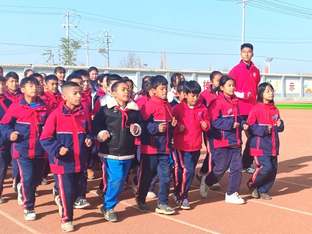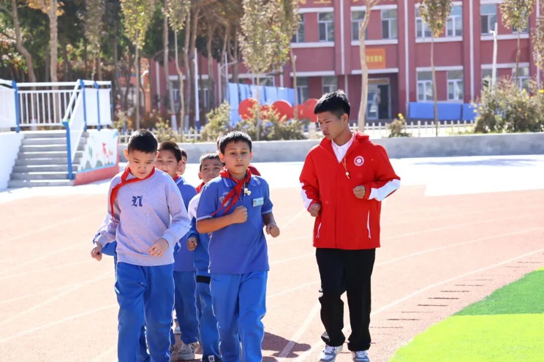 晨读结束,伴随着激昂的口哨音乐声,我们和孩子们踏着整齐的步伐,齐声喊着“一二一”的口号,在晨跑中开启了活力满满的一天。脚步踏过铺设不久的塑胶跑道,扬起细碎的沙粒,口号声回荡在校园上空,仿佛时光的齿轮轻轻转动,将我们带回了童年时光。