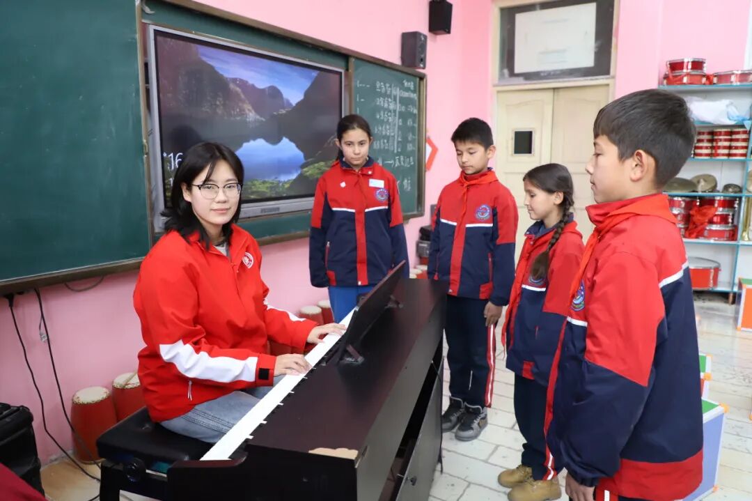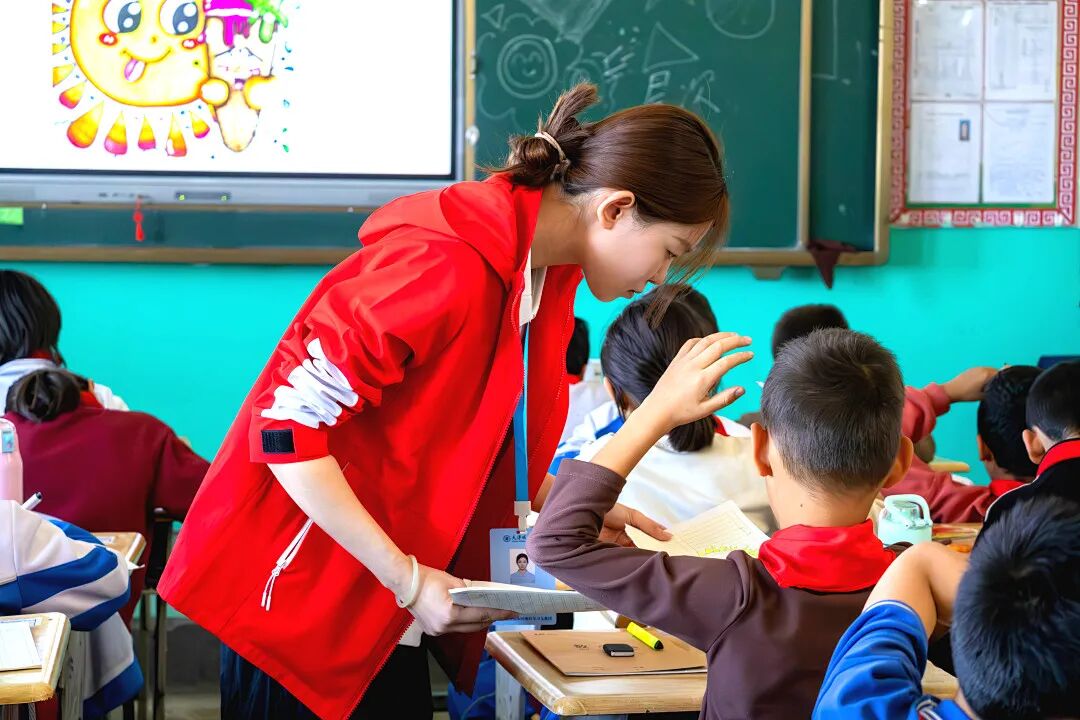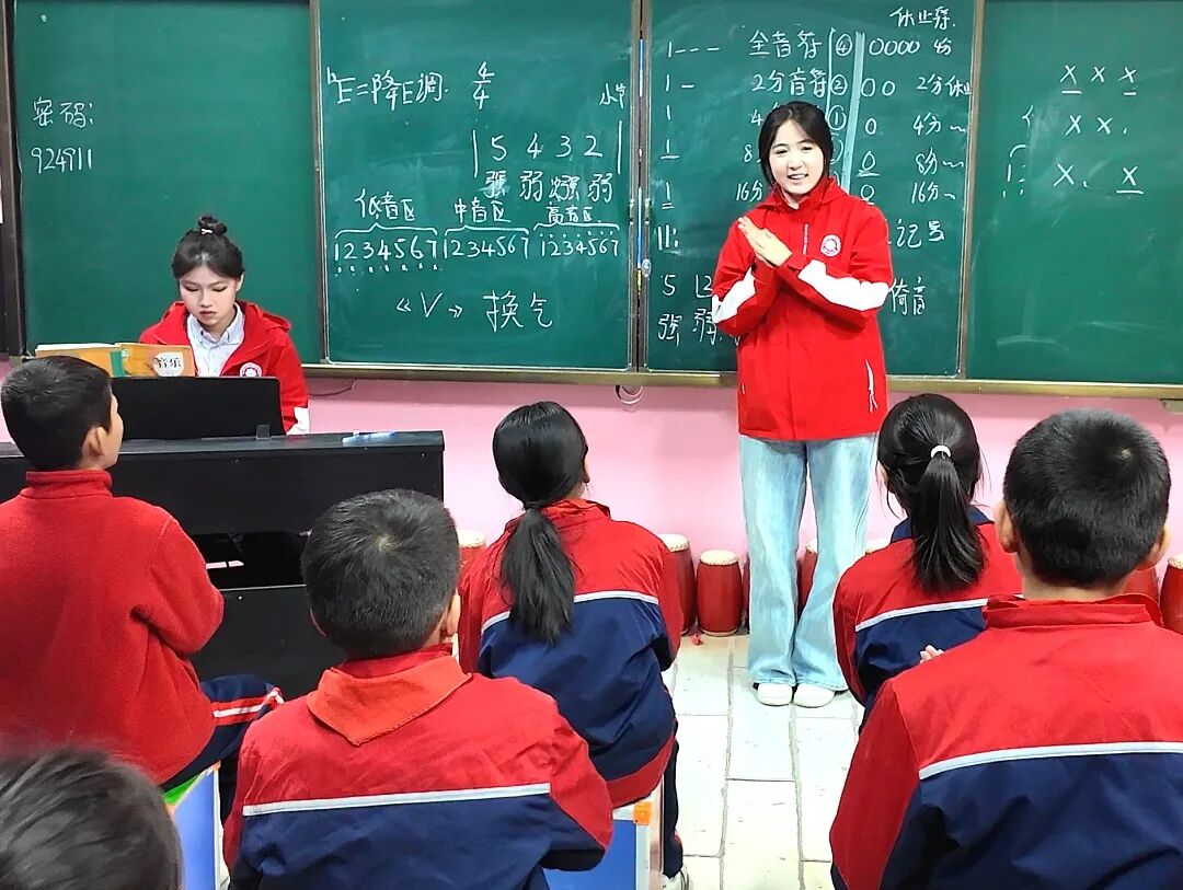 英语课上,清脆又响亮的跟读声,从明亮的教室里传出来,孩子们学着我们的样子张大嘴巴读得格外投入,小手不自觉地在桌面比画着字母形状。美术教室里,画笔“沙沙”的声响似无声乐曲。片刻间,空白画纸变成了斑斓世界。音乐课上,孩子们跟着老师大声歌唱,清亮的童声裹着稚气飘向远方。整间教室都浸在歌声里,不仅唱着孩子们对未来的憧憬,也成了此刻最温暖的支教注脚。计算机教室里热闹非凡,孩子们模仿着机器人的姿态,憨态可掬的动作裹着满满的童真,在明亮的计算机教室里轻轻荡开……
