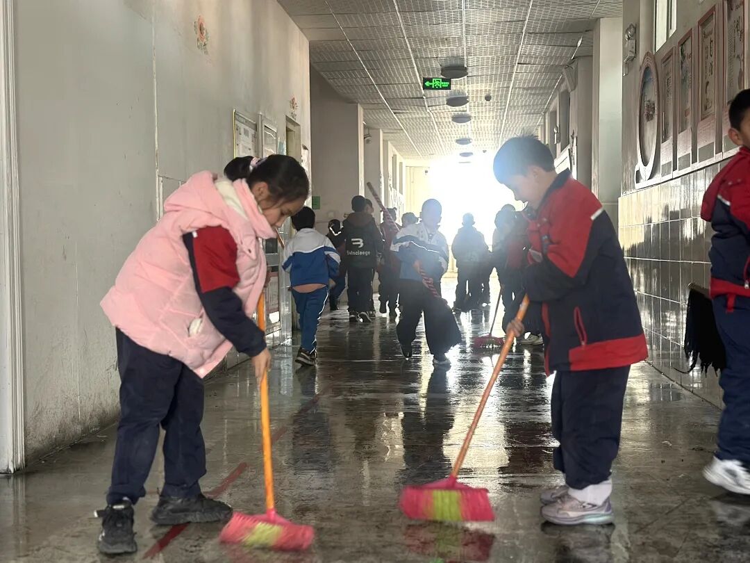 下午三点半的校园,在刀郎的《驼铃》歌声中慢慢苏醒,经过短暂的午饭和午休时光,我们抵达校园,开始了下午的工作。走进楼道,男孩子们已经夹着扫帚和拖把箭一般飞奔出教室,打闹成一团,女孩子们拿着抹布紧随其后,开始有模有样地打扫起来。整座校园像是被按下了某个神奇的“启动键”,原本安静得能听见尘埃落地的走廊,突然涌进了嬉闹声、扫帚摩擦地面的“沙沙”声、拖把池里水花溅起的“哗啦”声,还有此起彼伏的童声对话。看到我们,他们会停下脚步,轻轻举起右手,微微鞠躬,说“老师好”。这些奔跑中依然不忘礼仪的小身影,在日常生活中被这片土地上的文化传统,被老师们日复一日地言传身教,潜移默化地塑造成了这般模样。