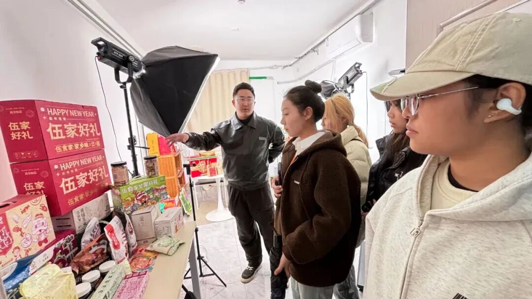 在天津翠溪园的淘创数字电商直播基地,新葡京师生走进占地6000平方米的“直播超级工厂”。该基地涵盖从珠宝美妆到农产品等130间不同品类的专业直播间,每个品类直播间拥有专属场景60间宿舍以及集成了“一件代发”与极速物流功能的“伍创云仓”,构建起完整的电商直播服务体系。通过参观“一岛五中心”(达人孵化、创业就业、短视频创作等)的系统布局,师生们全面学习了从达人孵化、内容创作到创业就业的全链路流程,切身感受到现代电商高效、系统化的运营模式。